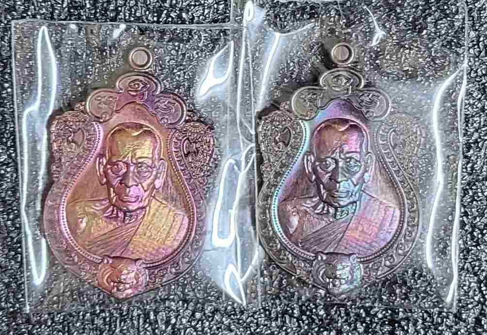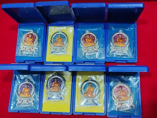 ล็อกเก็ต เล็ก หลวงปู่เปลี่ยน ประกอบไปด้วย ฉากสีทอง ฉากสีเขียวแก่ ฉากสีเขียวอ่อน ฉากสีส้มและฉากสีฟ้า (รวม 5 องค์) ที่ระลึกในการสร้งกำแพงวัดป่าเหวไฮ อธิฐานจิตโดยหลวงปู่เปลี่ยน ด้านหลังมีมวลสาร พ่อแม่ครู |