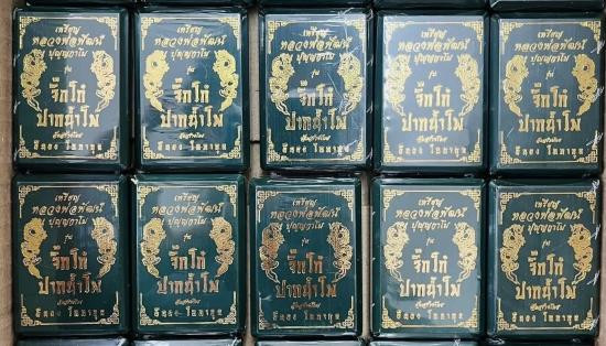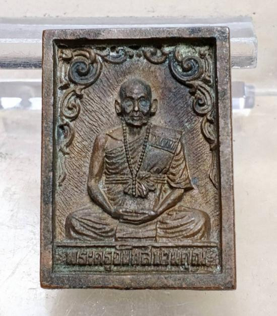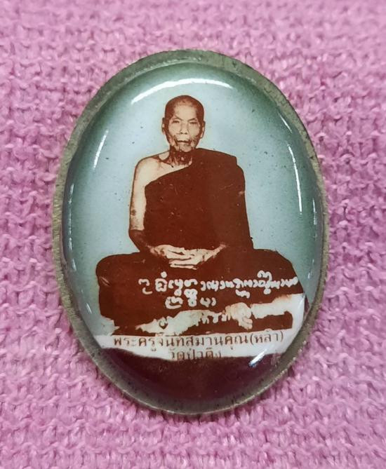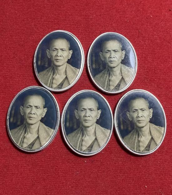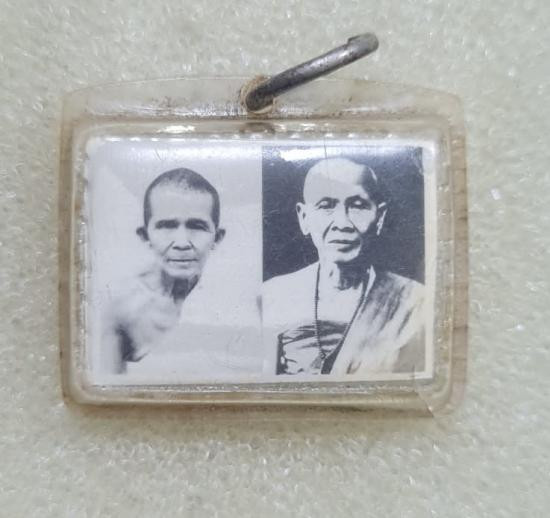 วัดใจ รูปถ่าย ลาภผล พลูทวี พระอาจารย์ราชัน วัดพระธาตุจำม่วง หลังตะกั่วจารมือ เลี่ยมพลาสติกโบราณ |