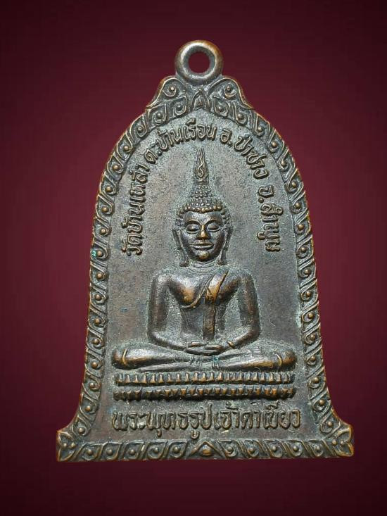 เหรียญพระเจ้าตาเขียว รุ่นแรก วัดบ้านเหล่า ต.บ้านเรือน อ.ป่าซาง จ.ลำพูน รุ่นศิษย์สร้างถวาย สมทบทุนสร้างพระอุโบสถ ปี 2530 เนื้อทองแดง |