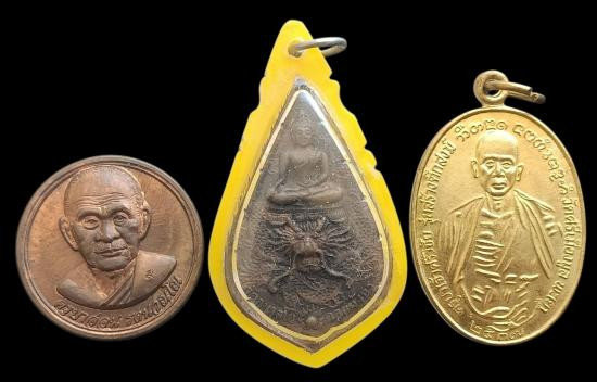 พร้อมกันทีเดียว 3 เหรียญเหรียญหยดน้ำ พระเหนือมังกร ปี2528 หลวงพ่อไพบูลย์ สุมังคโล วัดอนาลโย จ.พะเยา + เหรียญขวัญถุงโภคทรัพย์ ครูบาอ่อน รัตนวัณโณวัดสันต้นหวีด+ เหรียญครูบาศรีวิชัย ครูบาดวงดี วัดท่าจำปี |
