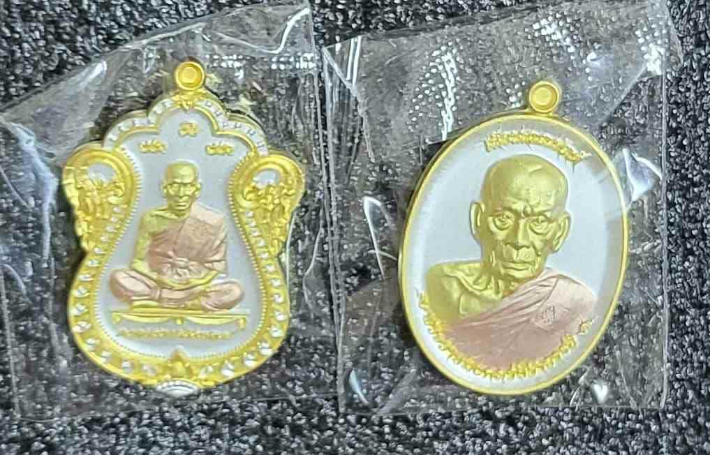 เคาะเดียวแดง เหรียญหลวงพ่อพัฒน์ รุ่นเลื่อนสมณศักดิ์ เนื้อกะไหล่เงินลงยา รวม 2 เหรียญ