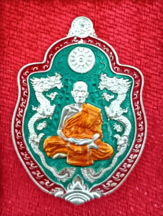 หลวงพ่อพัฒน์ วัดห้วยด้วน เหรียญรวยชนะรวย เนื้อเงินลงยาเขียว ลงยาจีวร NO.๙๙