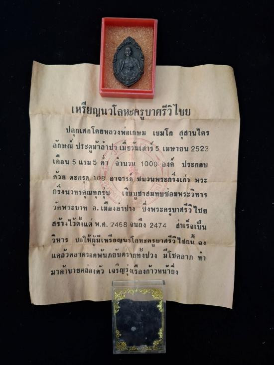 เหรียญครูบาราศรี วัดถ้ำเสือดาว เนื้อทองแดงกะไหล่เเงิน(พบเจอน้อย) ปี2518 จ.เชียงใหม่ + บัตรG-pra สภาพเดิมค่ะ |