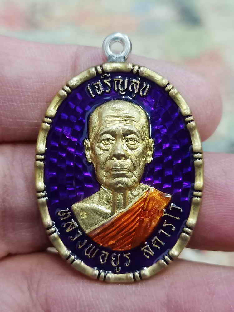 วัดใจ 100 PSGA เหรียญเจริญสุข งานบุญกฐิน หลวงพ่อยูร สคารโว วัดพนมเศษเหนือ จ.นครสวรรค์ ปี 2566 เนื้อทองเหลือง ห่วงเชื่อมเงิน ลงยาม่วง หมายเลข 845 กล่องเดิม ***ป๋องสุพรรณการันตี |
