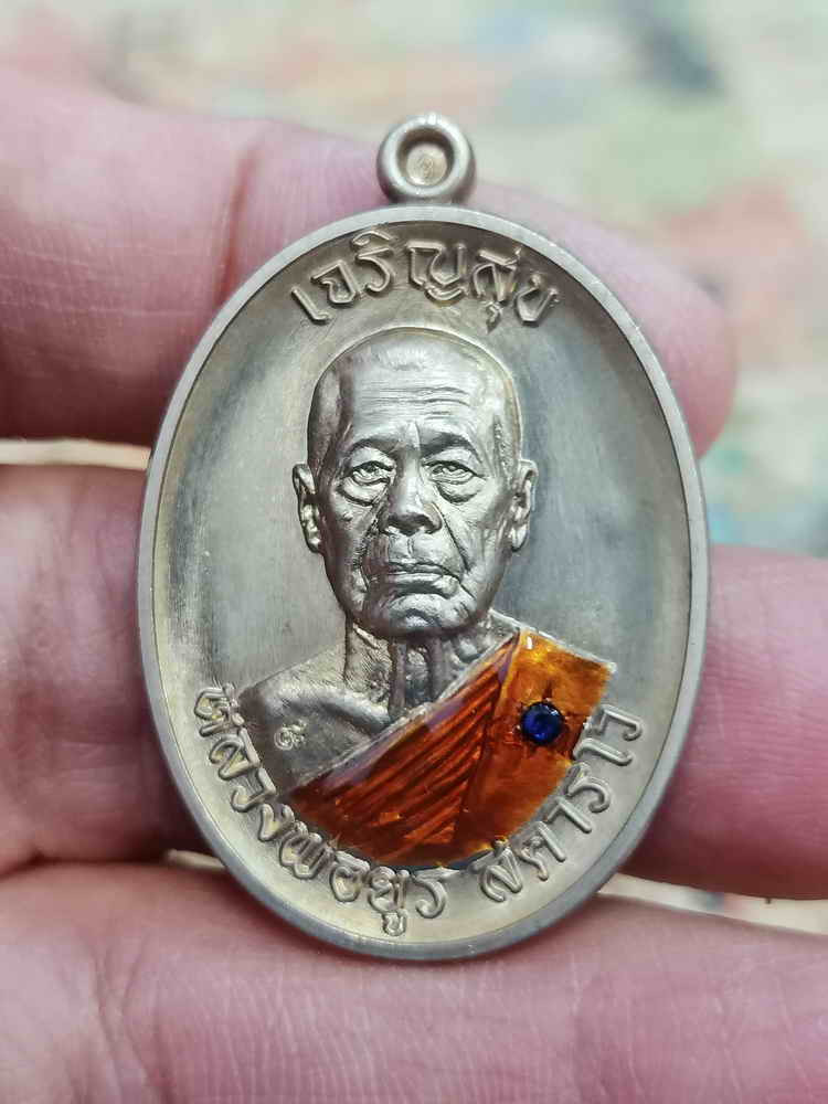 วัดใจ 100 PSGA เหรียญเจริญสุข งานบุญกฐิน หลวงพ่อยูร สคารโว วัดพนมเศษเหนือ จ.นครสวรรค์ ปี 2566 เนื้ออัลปาก้า ห่วงเชื่อมเงิน ฝังพลอย ลงยาจีวร หมายเลข 148 กล่องเดิม ***ป๋องสุพรรณการันตี |