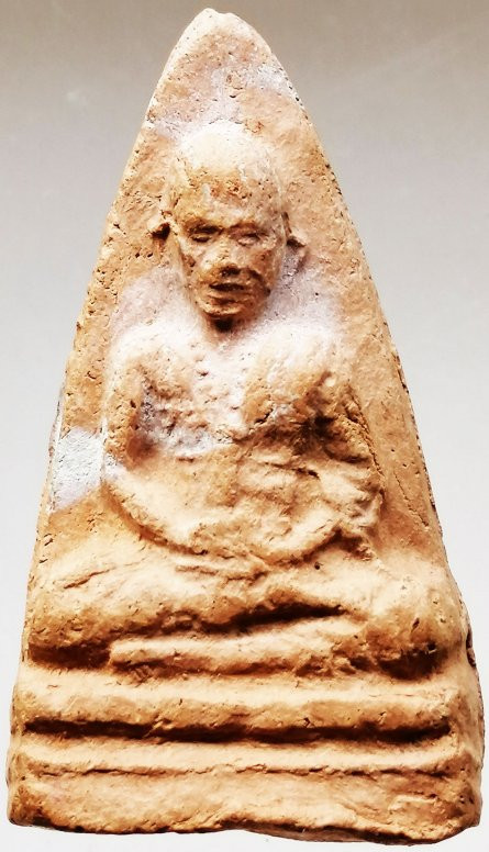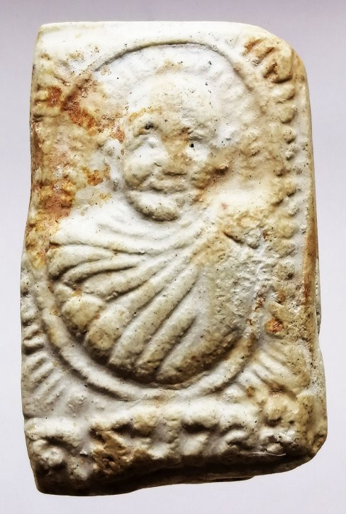 << วัดใจ >> พระผงรูปเหมือนครูบาศรีวิชัย หลังย่น ยุคแรก เนื้อดินผสมเถ้าอัฐิ เนื้อสีพิกุล สภาพสวยหน้าตาติด ผิวเก็บเดิม |