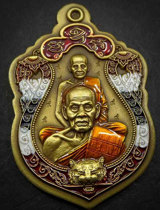 **เหรียญเสือคาบดาบ3 พยัคฆ์บูชาครูคู่บารมี 100 ปี หลวงพ่อพัฒน์ วัดห้วยด้วน เนื้อทองทิพย์ซาติน ไม่ตัดปีก ตอก ๙ รอบ ลงยาขอบสีธงชาติ หมายเลข 366 สวยๆครับ