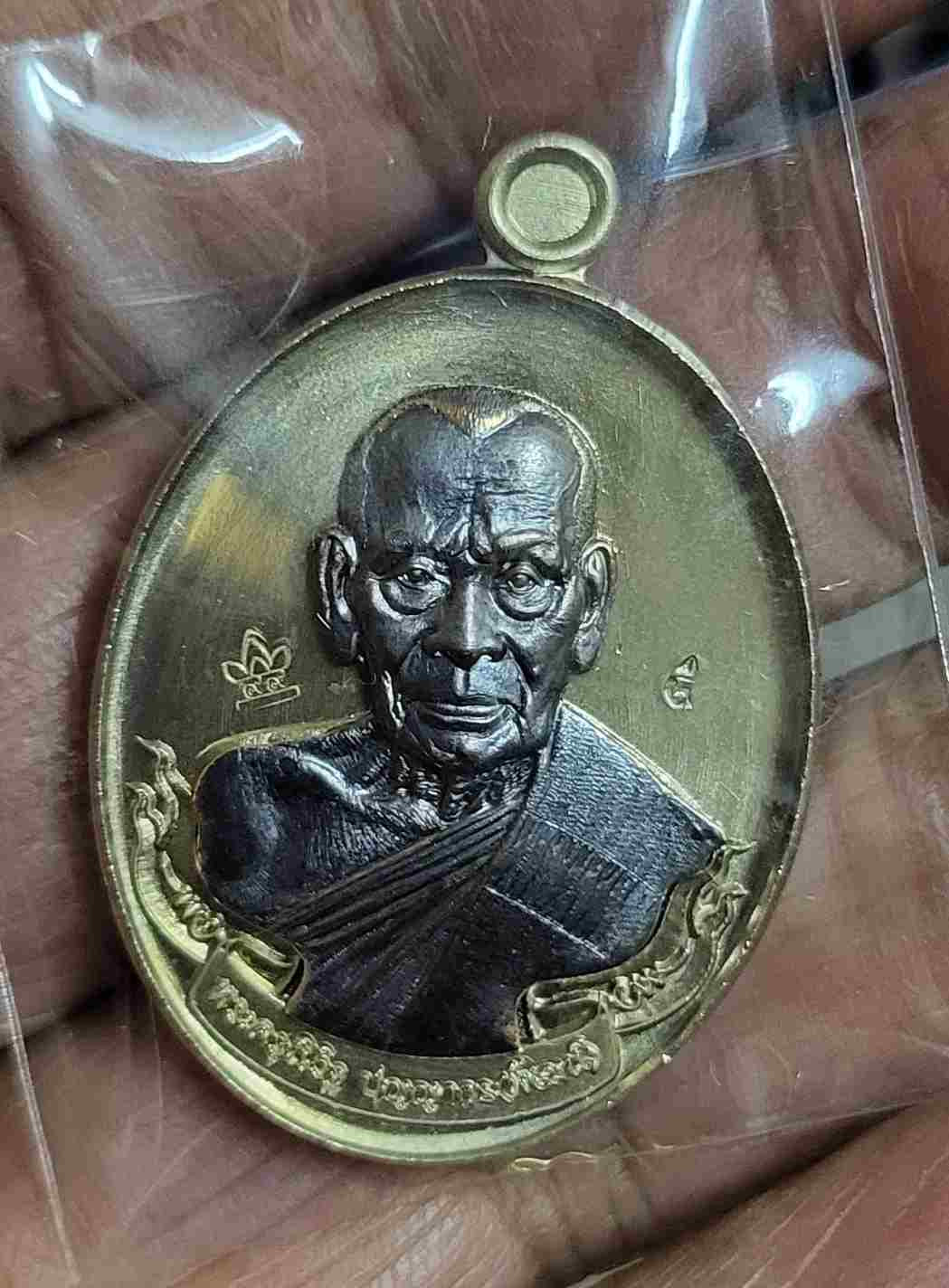 ล็อกเก็ตหลวงพ่อพัฒน์ ปุญญกาโม วัดห้วยด้วน รุ่นเลื่อนสมณศักดิ์ ฉากทอง หลังแบล๊คโรเดียม เลข 776 มาพร้อม กล่องเดิม **จองมา3500**