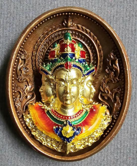 เหรียญเสมา พระเจ้าตนหลวง รุ่นทรัพย์วิเศษ วัดศรีโคมคำ เนื้อทองแดงรุ้ง ปี 2561 No.524