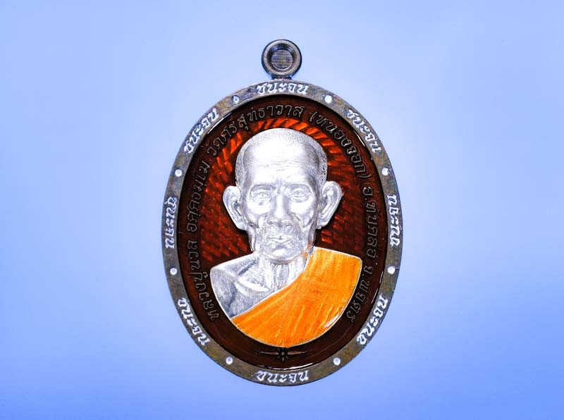 เหรียญพ่อพัฒน์ วัดห้วยด้วน นครสวรรค์ "ราชาพยัคฆ์"เนื้อสัตตะ ลงยา 3 สี พื้นแดง ขอบน้ำเงิน ลงยาจีวร (รายการที่ 13) |