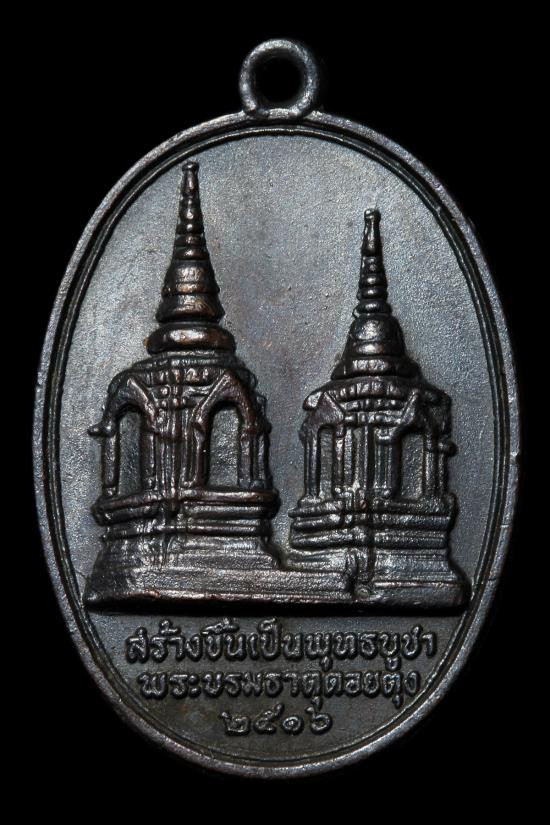 เหรียญหลวงปู่แหวน รุ่นรักษาดินแดนไทย ปี 2520 เนื้อทองเเดงรมดำ วัดดอยแม่ปั๋ง จ.เชียงใหม่ |
