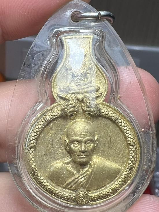 เหรียญหล่อน้ำเต้าดูดทรัพย์เนื้อชนวน หลวงตาม้า วัดถ้ำเมืองนะ(พุทธพรหมปัญโญ) พร้อมรอยจารหลวงตาม้า เลี่ยมจากวัด |
