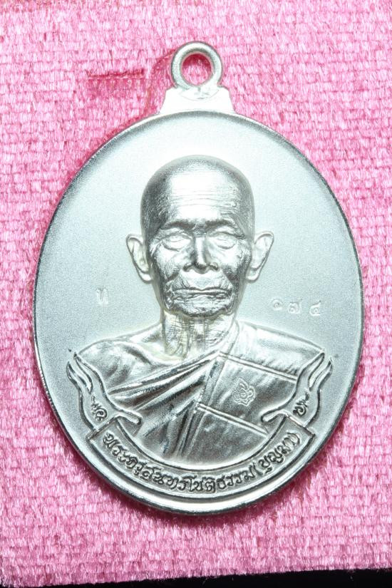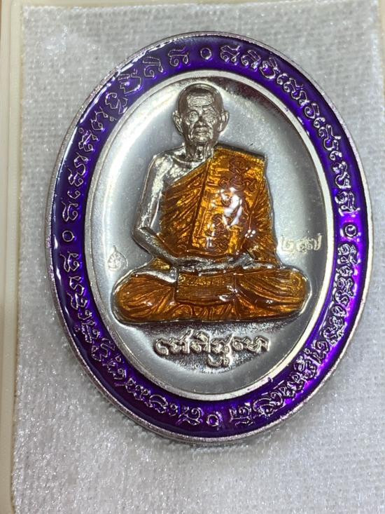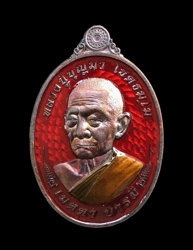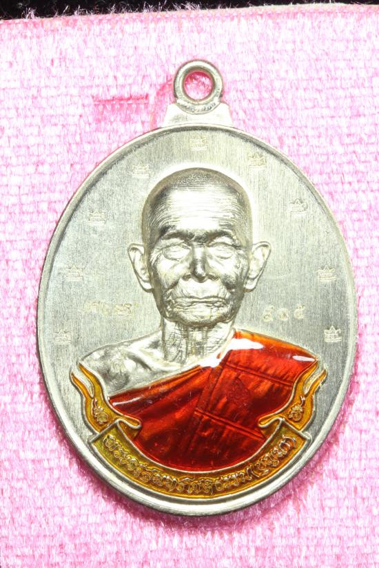 **แดง100***เหรียญห่วงเชื่อม หลวงปู่ม่น ธัมมจิณโณ วัดเนินตามาก ชลบุรี เนื้อเงินลงยา ปี 2537 หมายเลข 123 (พระล้างผิว) ไม่มีกล่องครับ