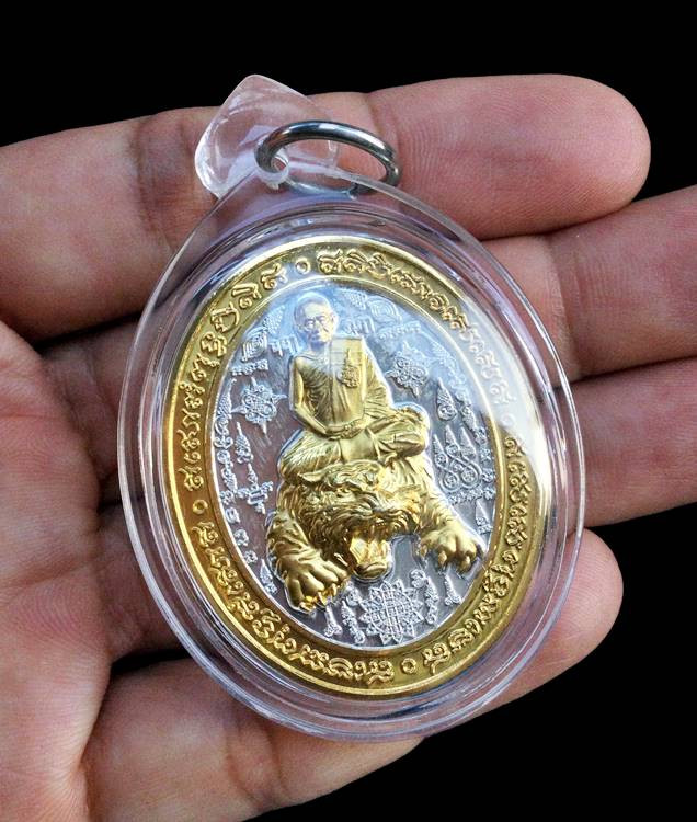 +!!เคาะเดียวllดง ตลอดสาย!!+ (หมายเลข 3 ) เหรียญ เสื้อเกราะปราจีน รุ่น2 หลวงปู่บุญมา สำนักสงฆ์เขาแก้วทอง (เนื้อนวะลายเสือ หลังเรียบ หน้ากากเงิน หลังเลเซอร์เสือ เลขสวย 3) พร้อมกล่องครับ