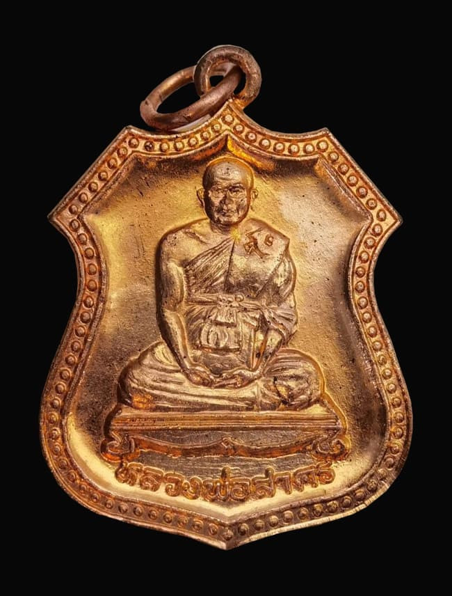 เหรียญพระอุปัชฌาย์หรั่ง วัดสันติธาราวาส เนื้อทองแดงกะหลั่ยทอง ปี 2504 พิมพ์มีกลาก |