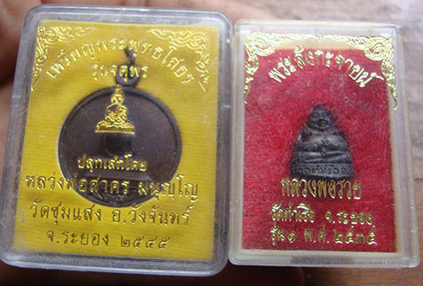 พระสังกัจจายน์ (รุ่นแรก) หลวงพ่อรวย วัดท่าเรือ จ.ระยอง ปี35 ตอกโค๊ต +เหรียญพระพุทธโสธร หลวงพ่อสาคร วัดชุมแสง จ.ระยอง ตอกโค๊ต ( 2 องค์ ) กล่องเดิมสวยค่ะ