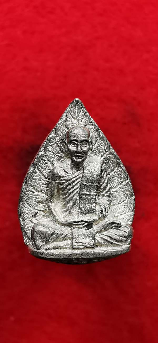 รูปเหมือนใบโพธิ์เนื้อเงินตอกโค๊ต พิมพ์เล็ก ตอกโค๊ต หลวงปู่ม่น วัดเนินตามาก จ.ชลบุรี ปี2533 |