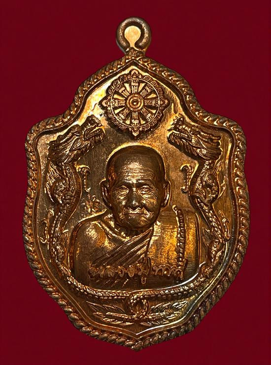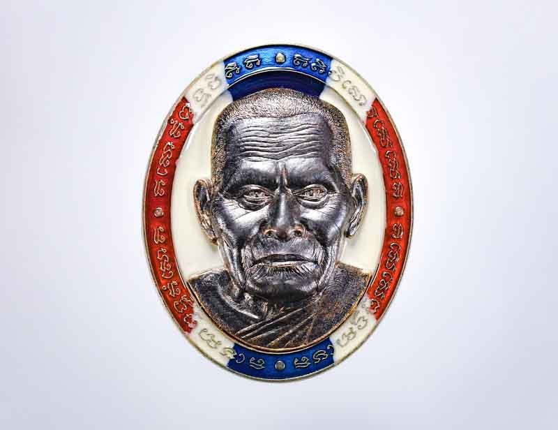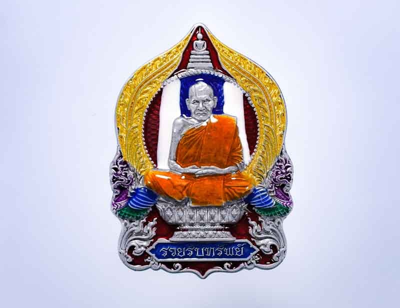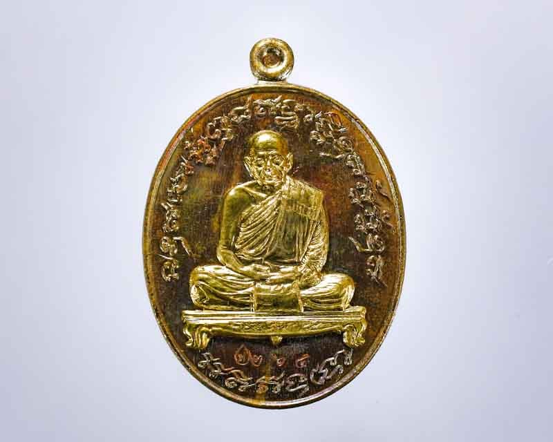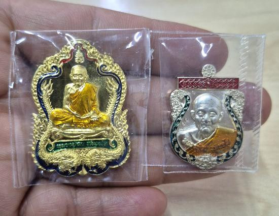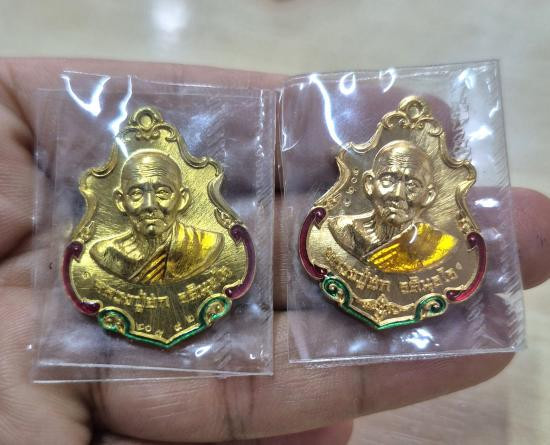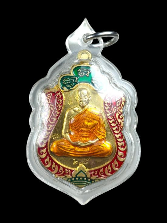 A7501.เหรียญเศรษฐีน้อย หลวงปู่ฮก วัดราษฎร์เรืองสุข ปี ๒๕๕๙ เนื้อทองฝาบาตรลงยา |
