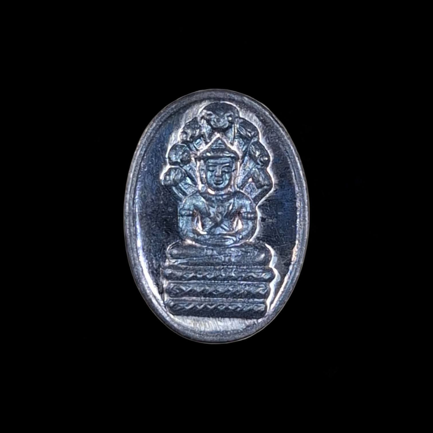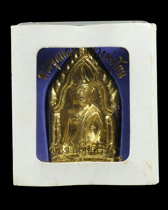 พระชัยวัฒน์สุคโต เนื้อนวะโลหะ ปี 2534 หลวงปู่ม่น วัดเนินตามาก ชลบุรี พร้อมกล่องเดิม |