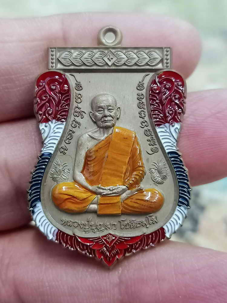 มาแรง 1 ใน 156 เหรียญเสมาบูชาครู หลวงปู่บุญมา สำนักสงฆ์เขาแก้วทอง จ.ปราจีนบุรี เนื้ออัลปาก้าลงยา3สี ลงยาจีวร เลขสวยNO.110 สวยมาก กล่องเดิมครับ |