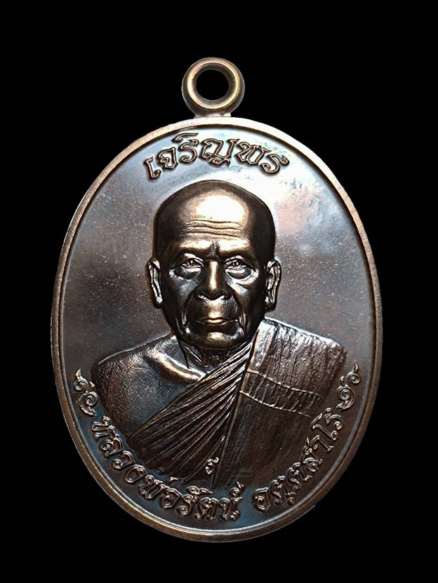 หลวงพ่อรัตน์ วัดป่าหวาย เหรียญเจริญพรบน ครึ่งองค์ เนื้อนวะโลหะ หมายเลข 53 ปี พ.ศ.2562 สวย กล่องเดิม |