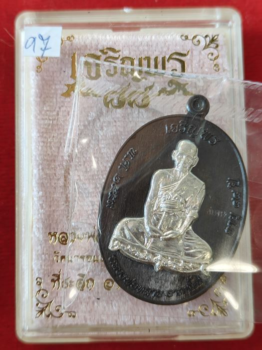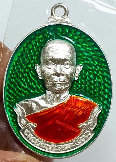 เหรียญหลวงปู่คร่ำ เนื้อเงินลงยาสีเขียว กล่องเดิม ปี2537(น้ำหนักเหรียญ 10.5กรัม)2... |