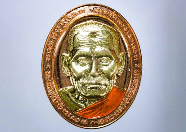 แดงแรก เหรียญ ลพ.เหมือน กะไหล่ทองลงยา |