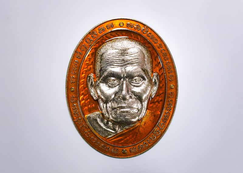 หน้าวัว เนื้อเงินลงยาแดง หลวงปู่ม่น วัดเนินตามาก |