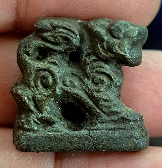 เคาะเดียวแดง เสือธนสิทธิ์ หลวงปู่โสฬส เนื้อสำริด มีรอยจาร |