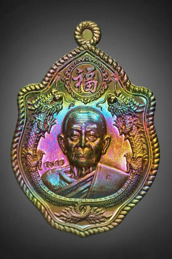 เหรียญมังกรคู่ รุ่น แชมป์โลก หลวงพ่อบุญมา เนื้อทองแดงผิวรุ้ง สวยเดิมๆ พระมีกล่องนะคับ |