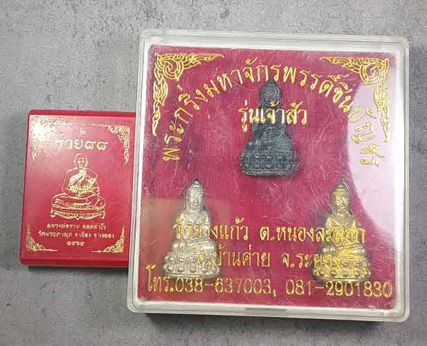 เศรษฐีรวยทรัพย์ หลวงพ่อรวย วัดมาบตาพุด เนื้อก้นครกฝังตะกรุดทองคำคู่ปัดบรอนซ์ หมายเลข ๑ สวยมากหายากสุดๆค่ะ |