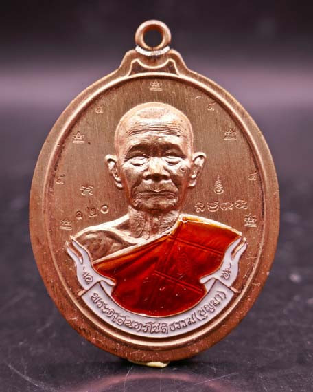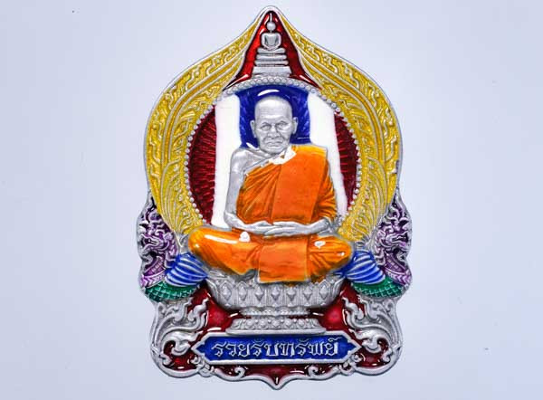 หลวงปู่ทองสุข​ วัดหนองฆ้อระยอง​ เหรียญเจริญพรหันข้างลงยาลายเสือ |