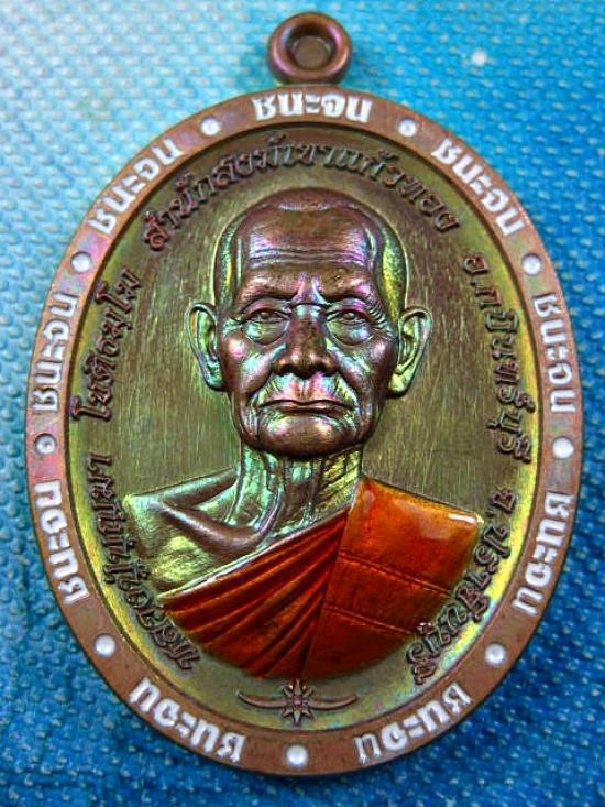 เหรียญรุ่นชนะจนเนื้อทองแดงผิวรุ้ง ลงยาขอบขนะจน หลวงปู่บุญมา โชติธมโม สำนักสงฆ์เขาแก้วทอง (---A79---) |