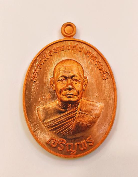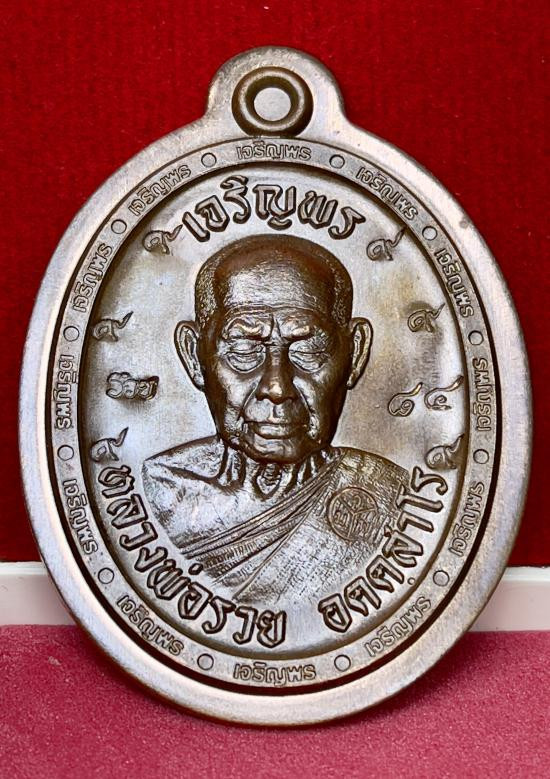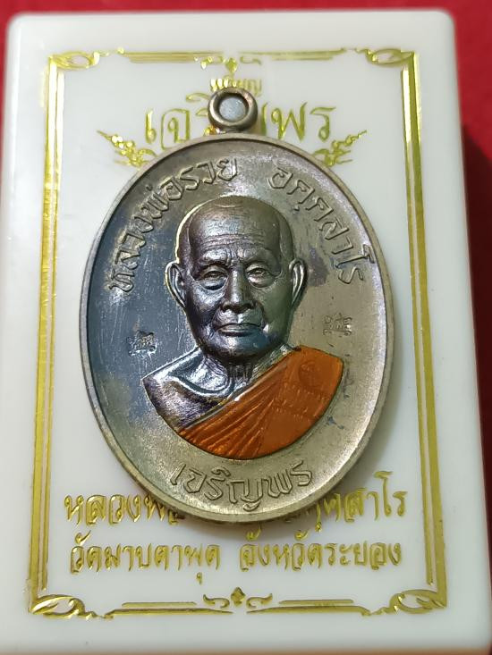เหรียญเจริญพรล่างหลวงพ่อรวย วัดมาบตาพุด เนื้อชนวนลงยาจีวร No.54