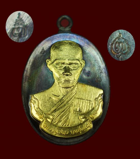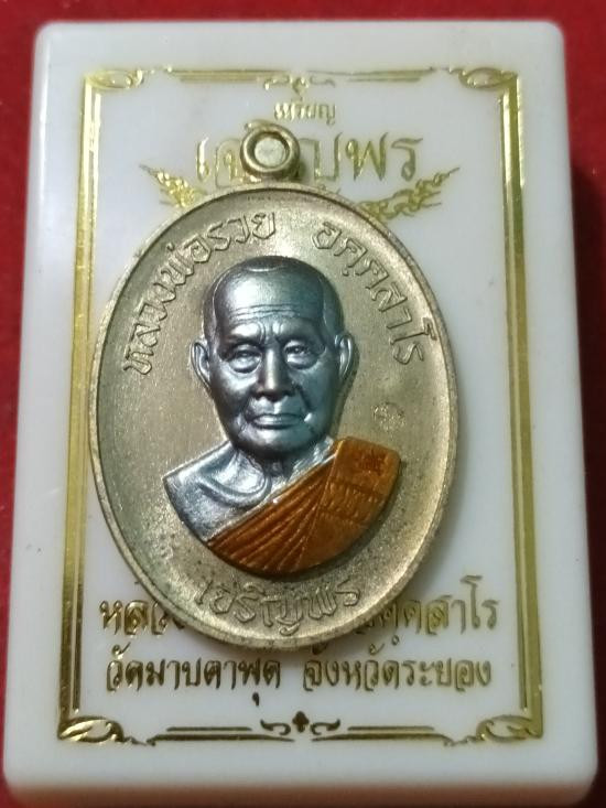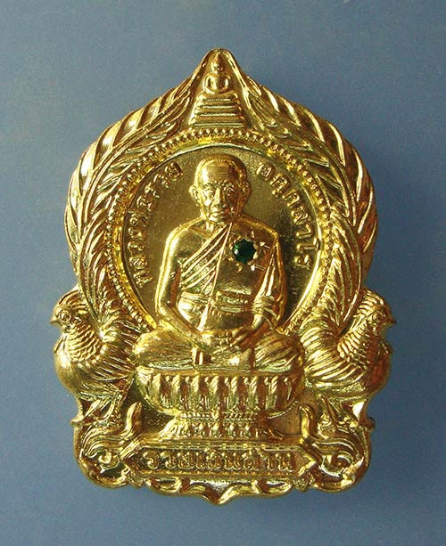 เหรียญนั่งพานมหามงคลรวยเงินล้าน เนื้อทองทิพย์ฝังพลอยมรกต หลวงพ่อรวย วัดมาบตาพุด จ.ระยองครับ