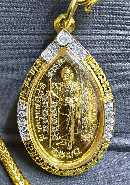 เหรียญรุ่น"พระพุทธเจ้าสิบชาติ ปาฏิหารย์เหนือดวง" หลวงปู่บุญมา โชติธัมโม ปราจีนบุรี เนื้อชุบทอง ฝังเพชรCZเต็มพื้น,พลอยขาวสังฆาฏิ ใส่ตลับอิตาลีชุบทองฝังเพชรขอบ+สร้อยชุบทองพร้อมใช้ หมายเลขเบิ้ล ๓๓....พ