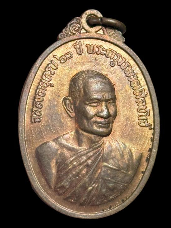 เหรียญเจริญพรล่างหลวงพ่อรวย วัดมาบตาพุด เนื้อชนวหน้ากากทองแดงรมดำ No.70