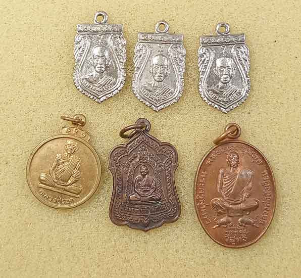 เหรียญเสมาเล็ก หลวงพ่อเณร วัดอินประชาราม นครนายก 3 เหรียญ +เหรียญหลวงพ่อสังเวียน วัดสบกเขียว นครนายก +เหรียญหลวงปู่บุญ +เหรียญหลวงปู่รอด ชลบุรี