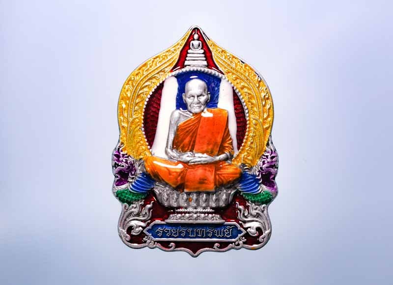 เหรียญเสมา 7 รอบ เนื้อเงินลงยา พระครูพิศ าลพรหมจรรย์ เจ้าคณะอำเภอบ้านบึง จ.ชลบุรี หมายเลข 856 |