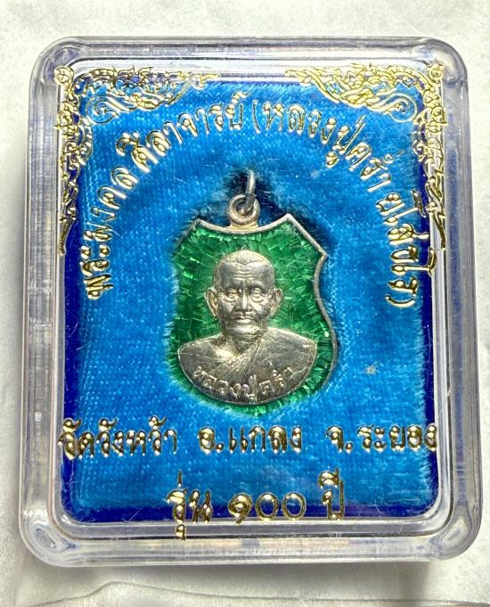 เหรียญอาร์ม 100ปี หลวงปู่คร่ำ วัดวังหว้า จ.ระยอง เนื้อเงินลงยาเขียว สภาพสวยพร้อมกล่องเดิมๆครับ |