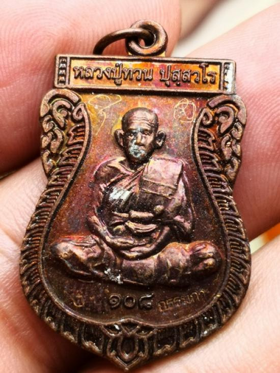 เคาะเดียวแดง.....เหรียญหน้าโล่หลวงปู่คร่ำ รุ่นสรงน้ำ เสาร์ห้า ปี2537 เนื้อนวะหน้าทองคำ วัดวังหว้า จ.ระยอง เลข 2904 |