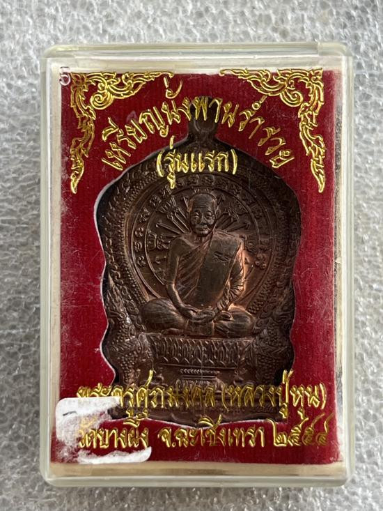 เหรียญนั่งพานร่ำรวยรุ่นแรก พระครูศุภมงคล (หลวงปู่หุน) วัดบางผึ้ง ฉะเชิงเทรา ปี2554 กล่องเดิม |