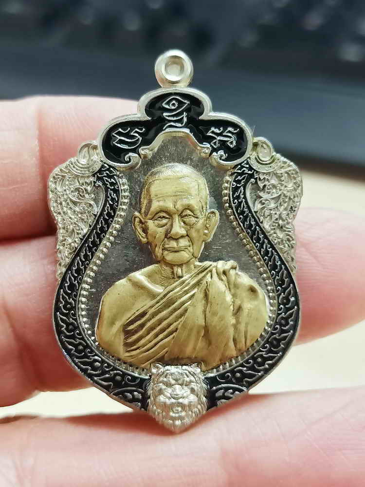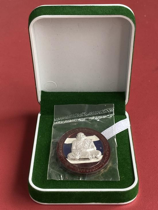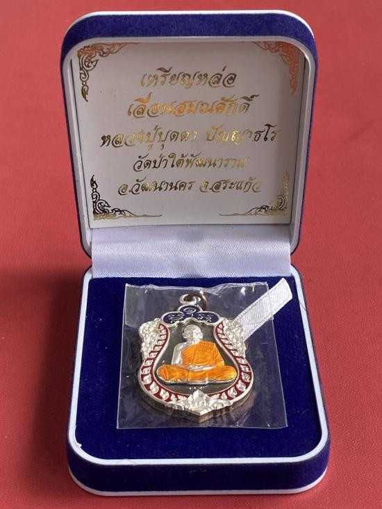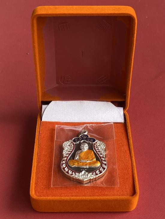 เคาะเดียวแดง หลวงปู่บุดดา รุ่น เสมาเลื่อนสมณศักดิ์ เนื้อนวะหน้ากากเงิน ขอบเงินลงยา (กล่องแทน) |