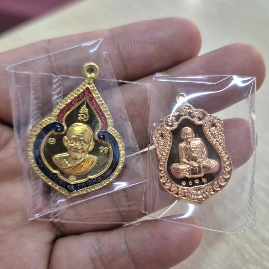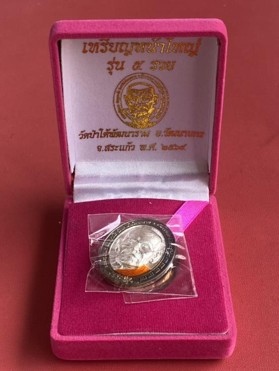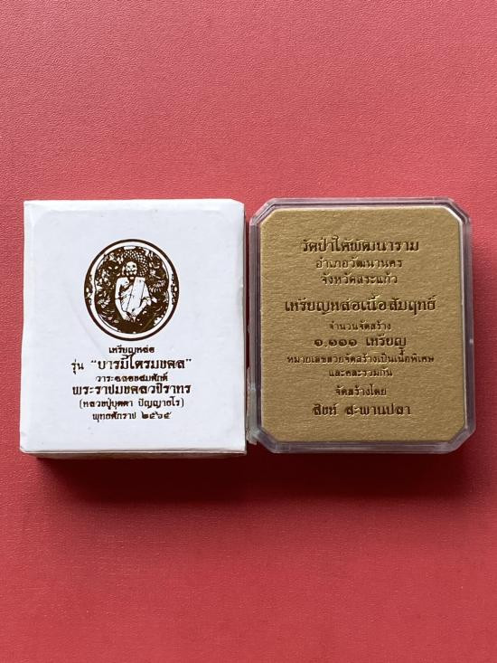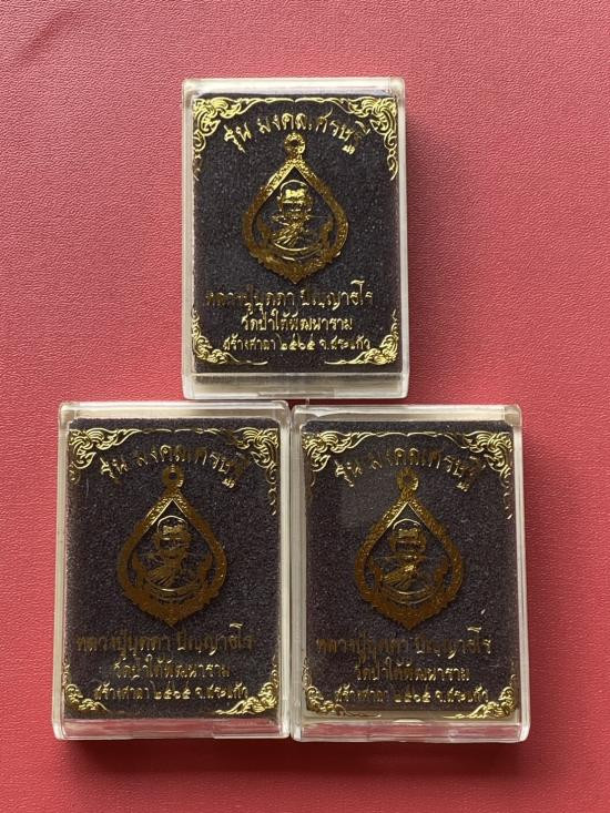 วัดใจ 100 เหรียญเสมารวยทันใจ หลวงพ่อรวย วัดมาบตาพุด จ.ระยอง ปี 2565 ชนวนผิวรุ้ง ลงยาแดง หมายเลข 5 กล่องเดิม |