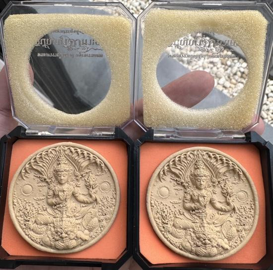กราบขออนุญาตท่านอ.เฉลิมชัย โฆษิตพิพัฒน์ นำเสนอ อภิปัญญามหาเศรษฐี พิมพ์เล็ก ขนาด 3.5 ซม. เนื้อผงพุทธคุณ 1 ชุด สามสี พร้อมกล่องเดิม มีปลอกขาวครบ |