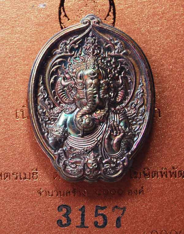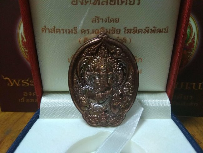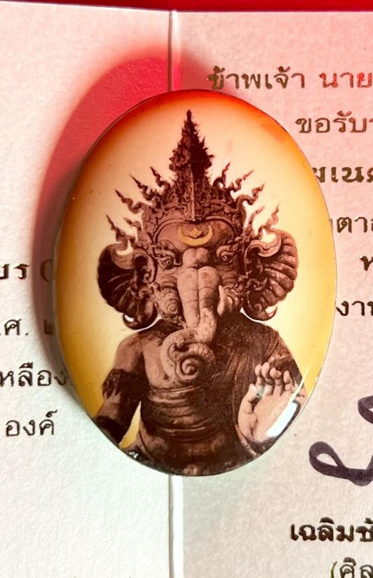 ล็อกเกตพระพิฆเนศหล่อเศียร พิมพ์เล็ก เกรด 3!! สีที่ 3 น้ำตาล ฉากเหลือง |