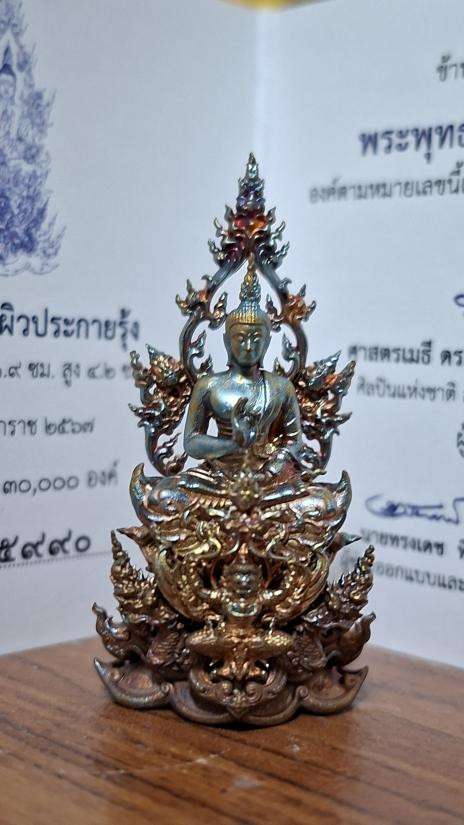 กราบขออนุญาตท่านอ.เฉลิมชัย โฆษิตพิพัฒน์ นำเสนอ พระพุทธราชสวัสดิ์มงคล เนื้อนวะโลหะ ผิวรุ้ง หมายเลข ๒๕๙๙๐ อุปกรณ์ครบ |