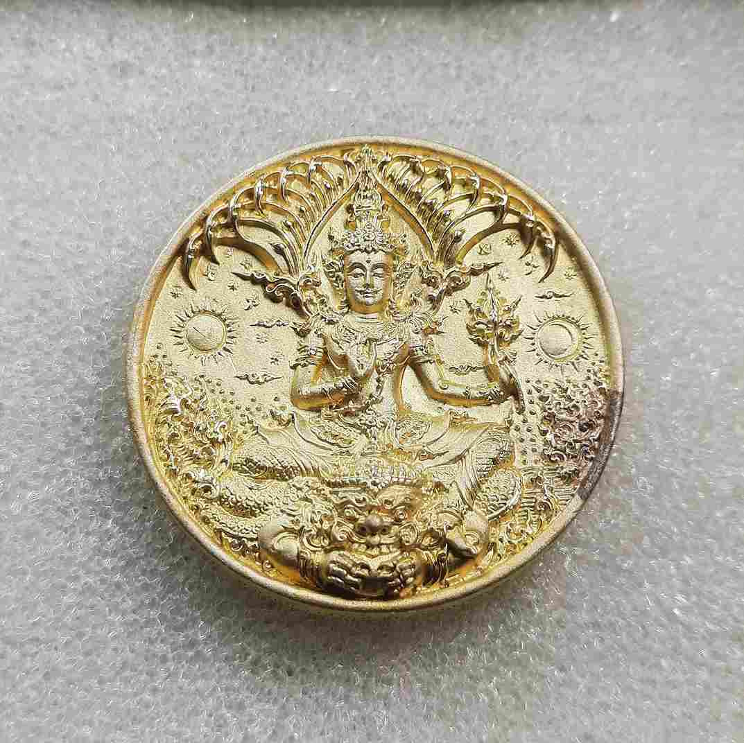 เหรียญหลวงปู่ทวดรุ่น "อภิเมตตา มหาโพธิสัตว์" พิมพ์จิ๋ว เจริญลาภ เจริญยศ เนื้ออัลปาก้า องค์กะไหล่ทองคำ หมายเลข ๙๑๖ ซีลเดิมๆ พร้อมกล่องเดิม |