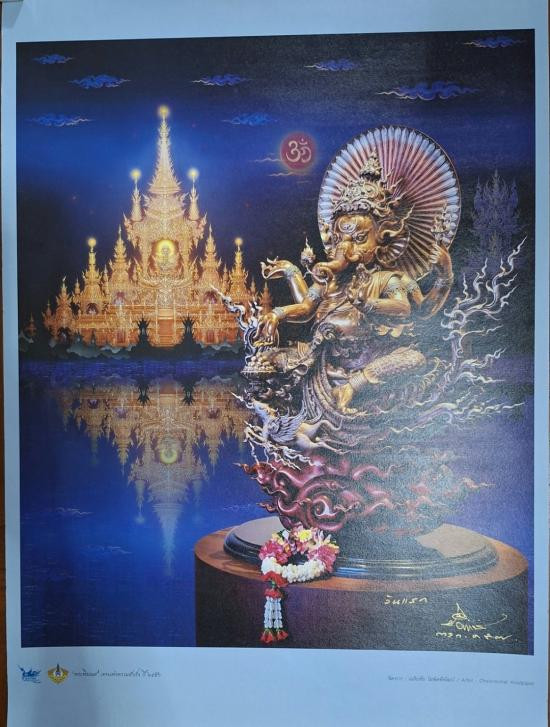 ภาพพิมพ์กระดาษพระพิฆเนศพร้อมลายเซ็นสดขนาด 69 ซม |