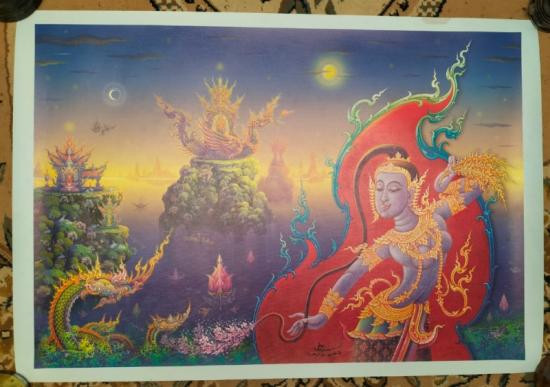 ภาพพิมพ์กระดาษพระแม่โพสพพร้อมลายเซ็นสดขนาด 69*99 ซม มีคราบบางๆที่ขอบกระดาษ |